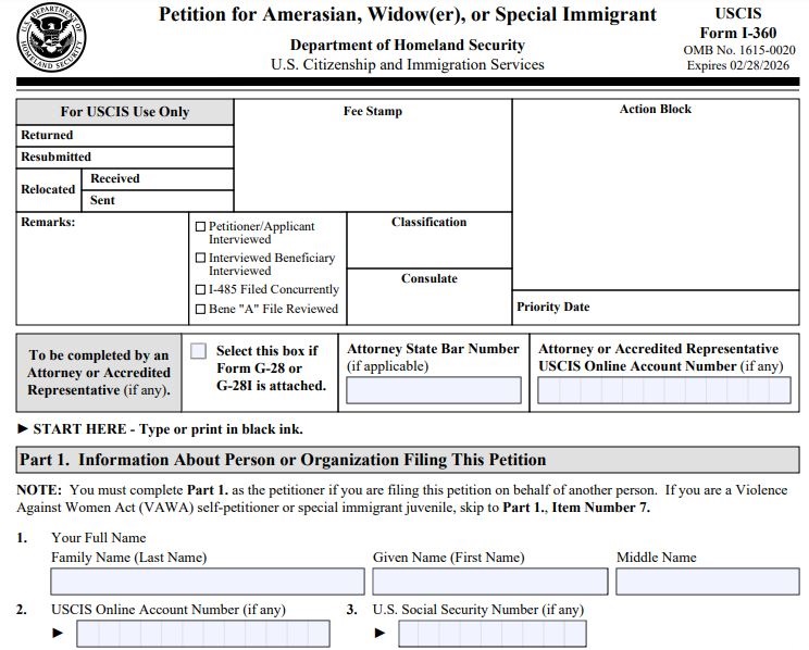 form I-360 application